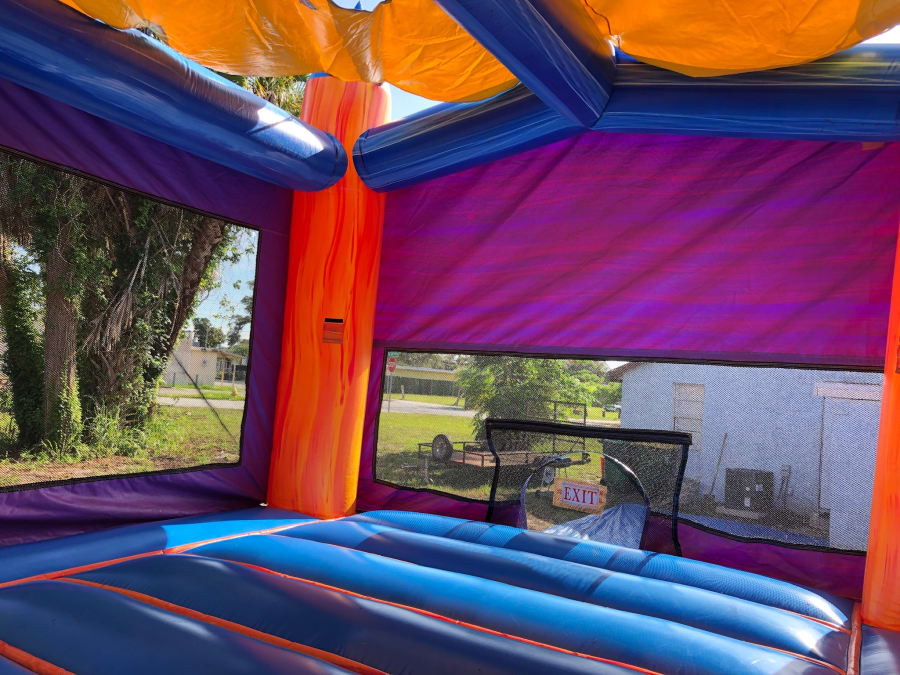 Looking for an eye-catching bounce house rental near Palm Bay that brings serious color and energy to your event? The Flame Bounce House is a bold inflatable perfect for birthdays, school parties, and backyard fun all across Brevard County. With vibrant orange and blue castle turrets, this unit brings that fire to every celebration—without the heat!