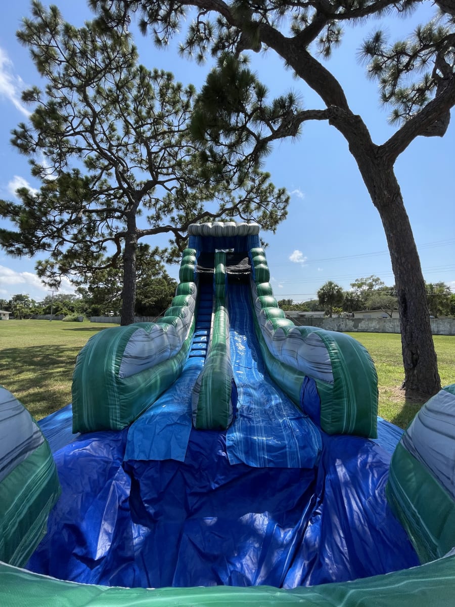 Get ready for an epic splash with our Tropical Drip 22ft Water Slide with Pool – one of the tallest and most thrilling slides in Brevard County! Featuring a lush tropical theme and a built-in splash pool, this inflatable is perfect for beating the Florida heat.