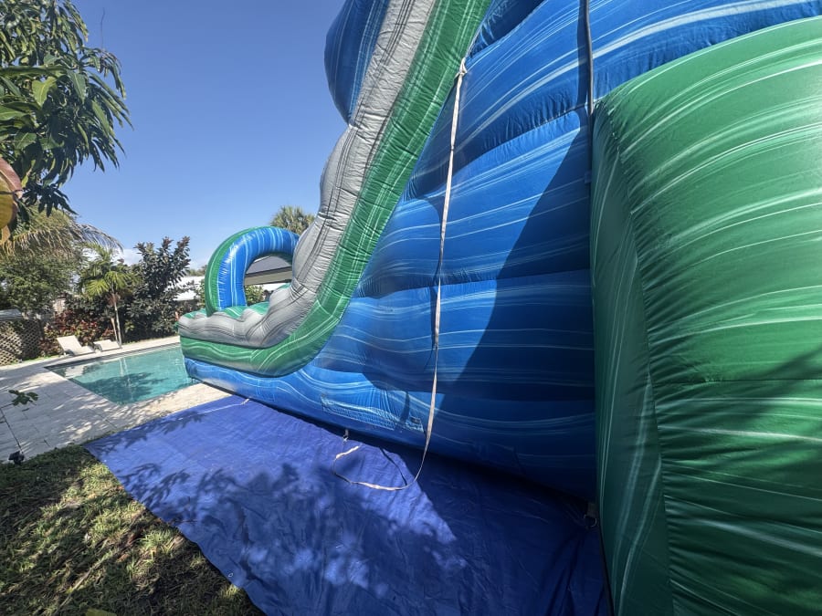 Turn up the heat with the Super Drip 27ft inflatable water slide, one of the tallest and most exciting slides available in Brevard County. This vibrant green-and-blue giant waterslide brings ultimate summer party vibes to any event and gives you three rental options for the way YOU want to slide!
