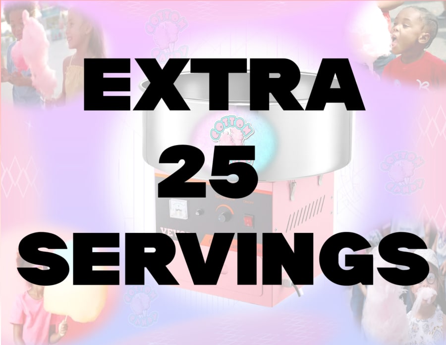 EXTRA COTTON CANDY SERVINGS (25 STICKS & 2 SUGARS)