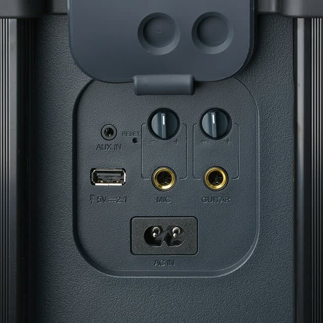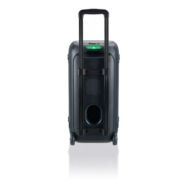 Sturdy tripod stand included for elevated sound projection