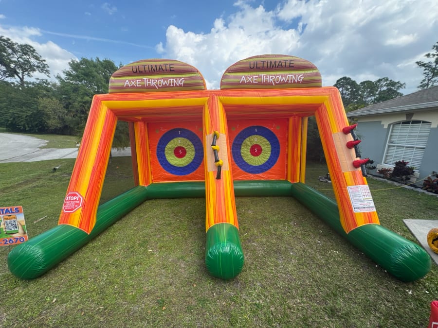 Looking to spice up your party with something different than a bounce house or water slide? Our Inflatable Axe Throwing Game is the perfect addition for kids, teens, and adults who love a little friendly competition! This fun and safe game features two throwing lanes, soft Velcro axes, and a colorful carnival-style setup that stands out at any event.